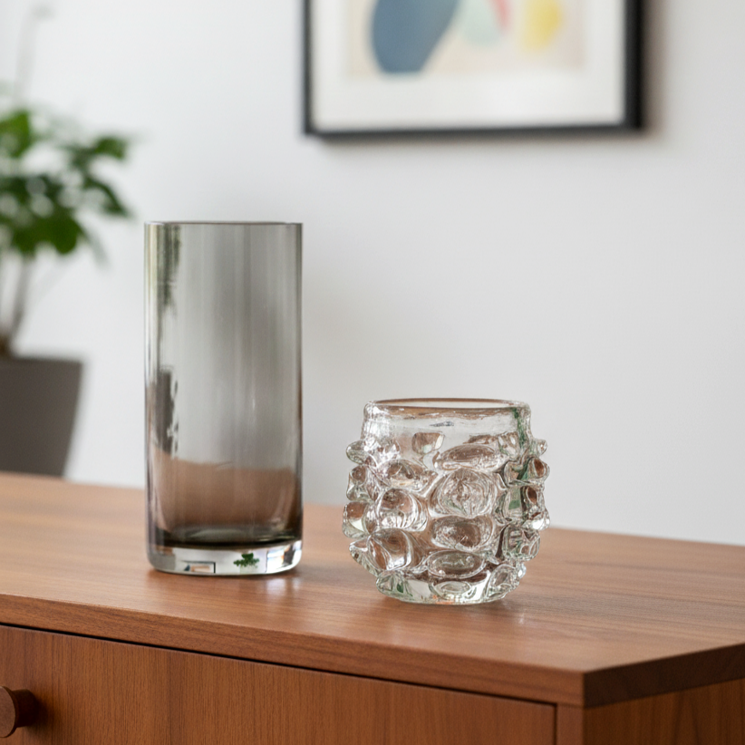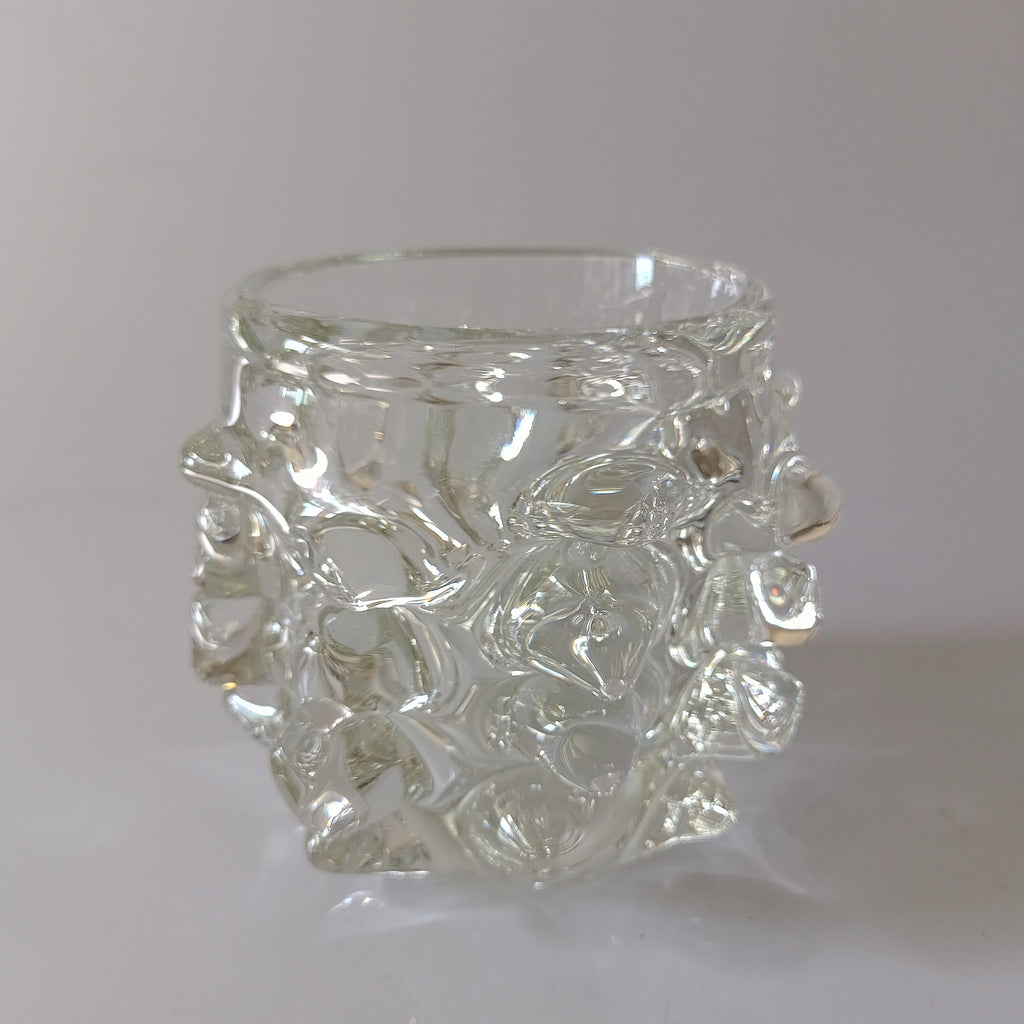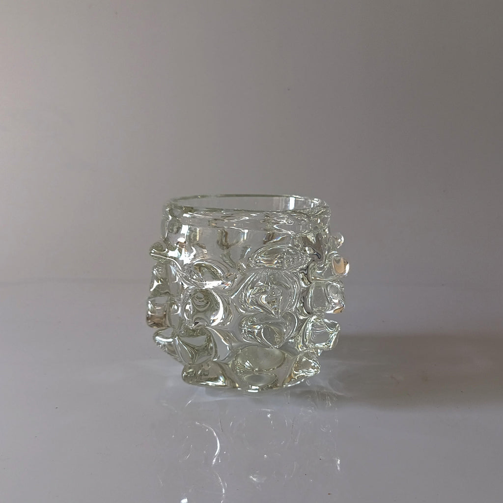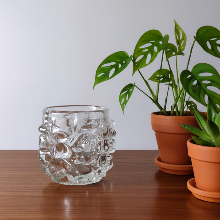 אגרטל זכוכית נמוך, טקסטורת בועות/קוצים, וינטג'