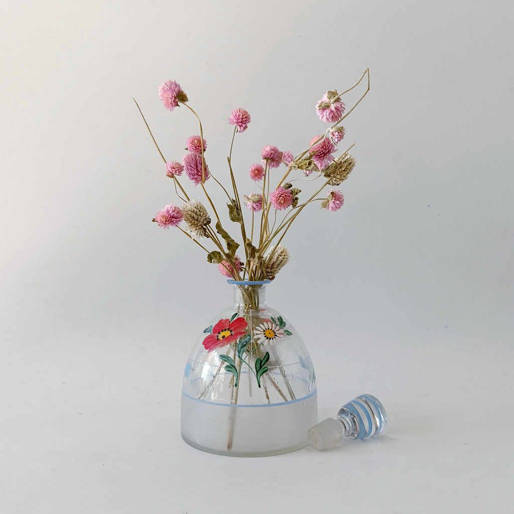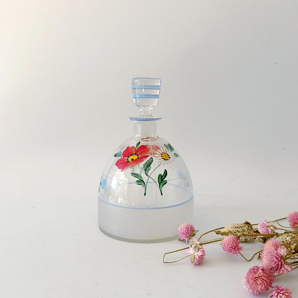 ציור יד של פרחים משני צידי הבקבוק ופקק קריסטלי