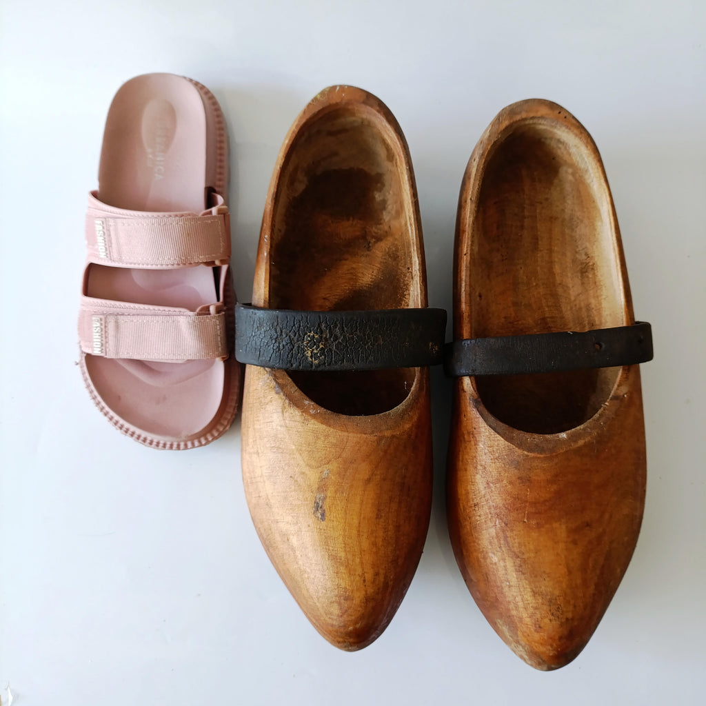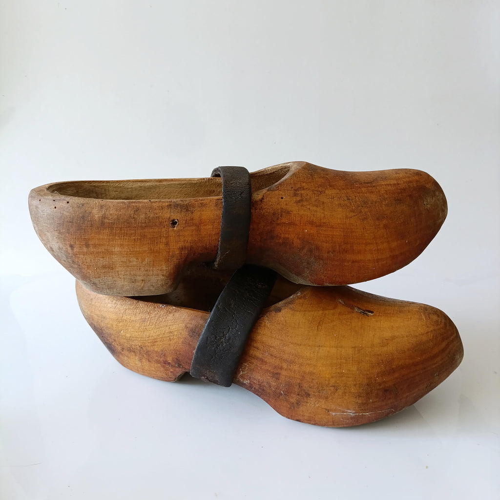 זוג נעלי עץ גדולות מימדים לדקורציה, וינטג' הולנדי