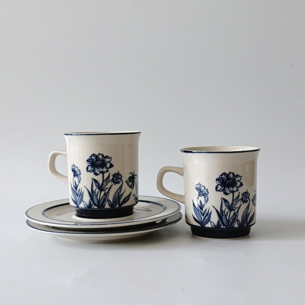 זוג ספלי מאג וצלוחיות, וינטג' יפני