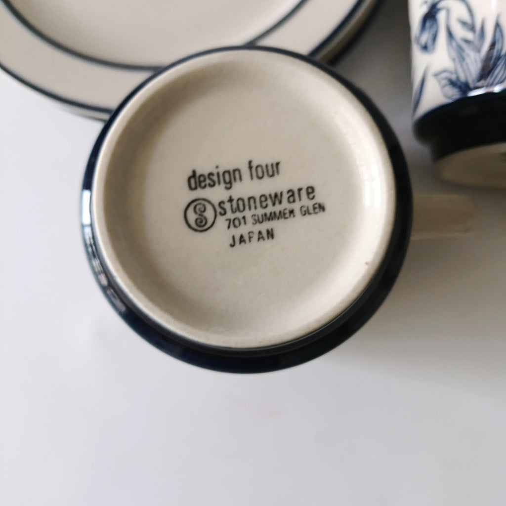 Stonware בצבע פנינה עם עיטורים בכחול