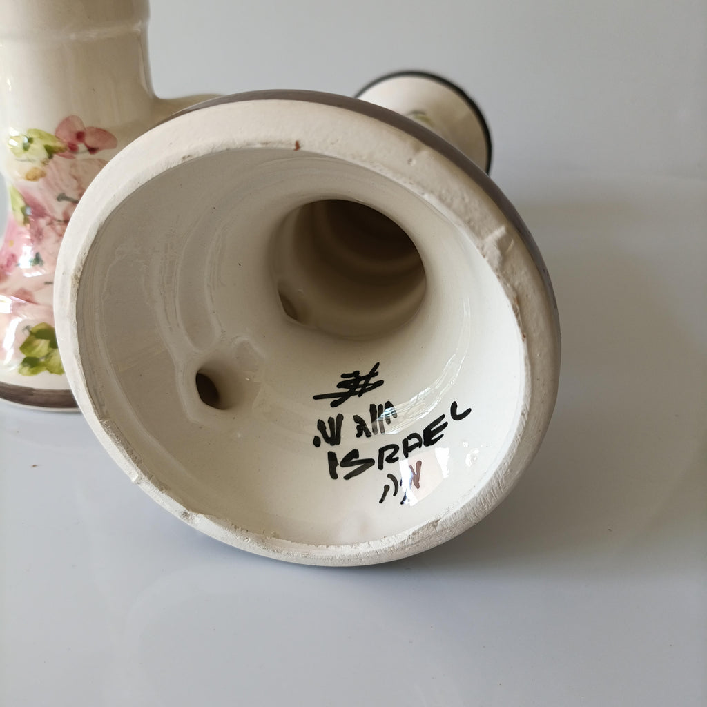 זוג פמוטי קרמיקה, ציור יד, וינטג' ישראלי, חווה שלזינגר