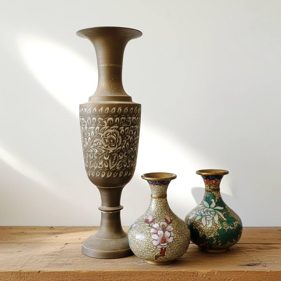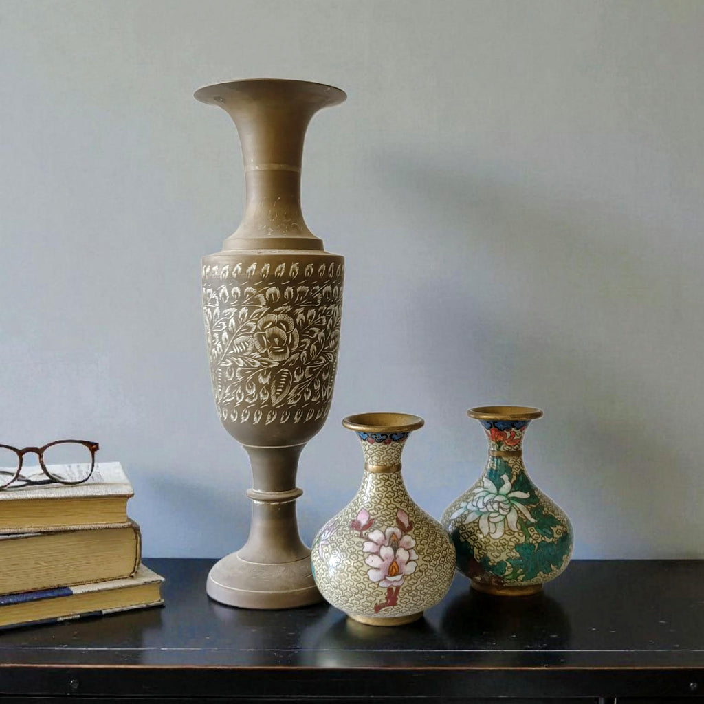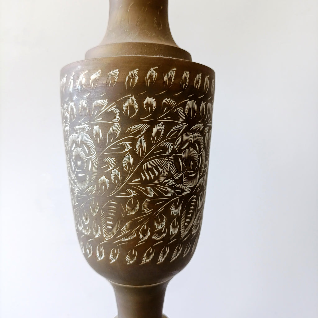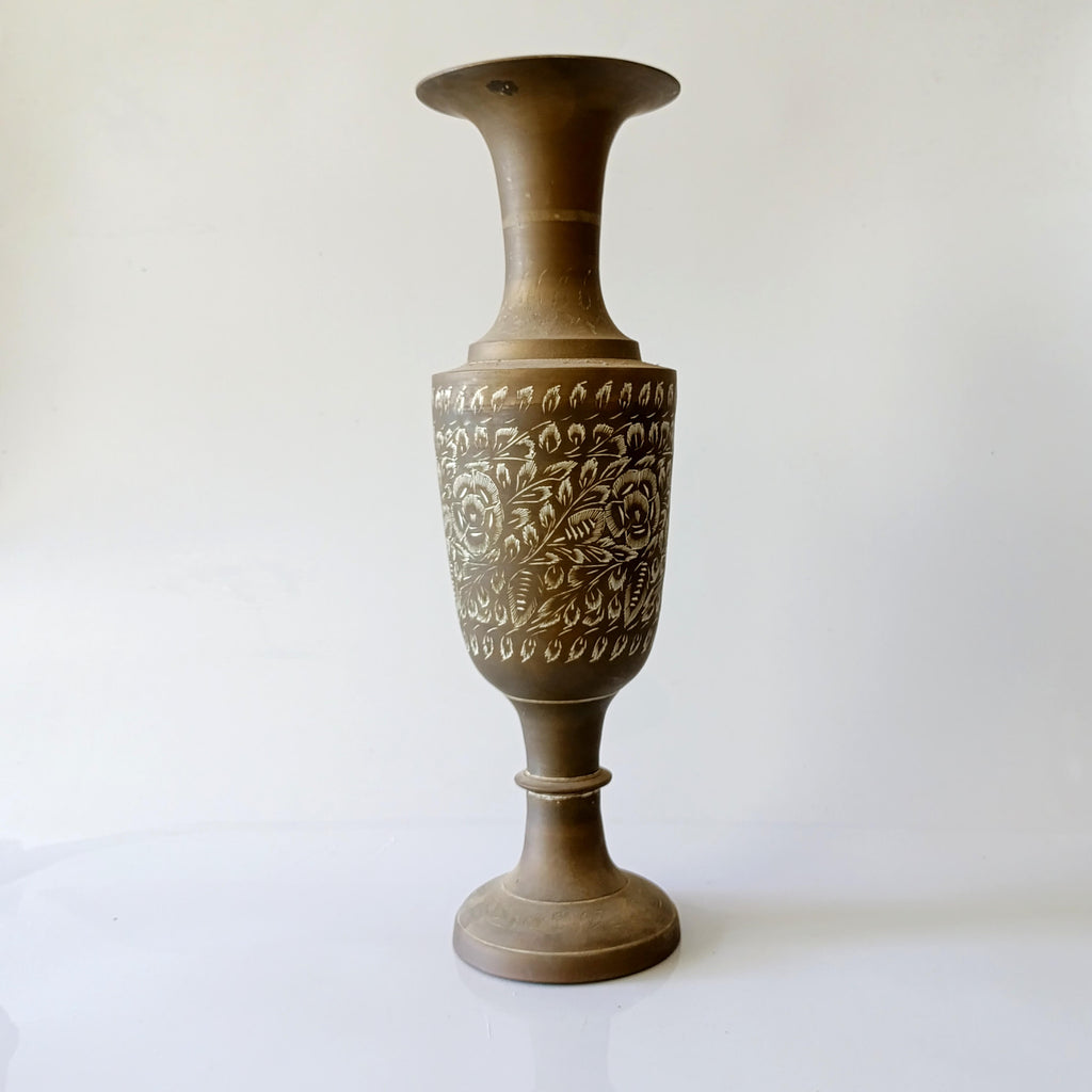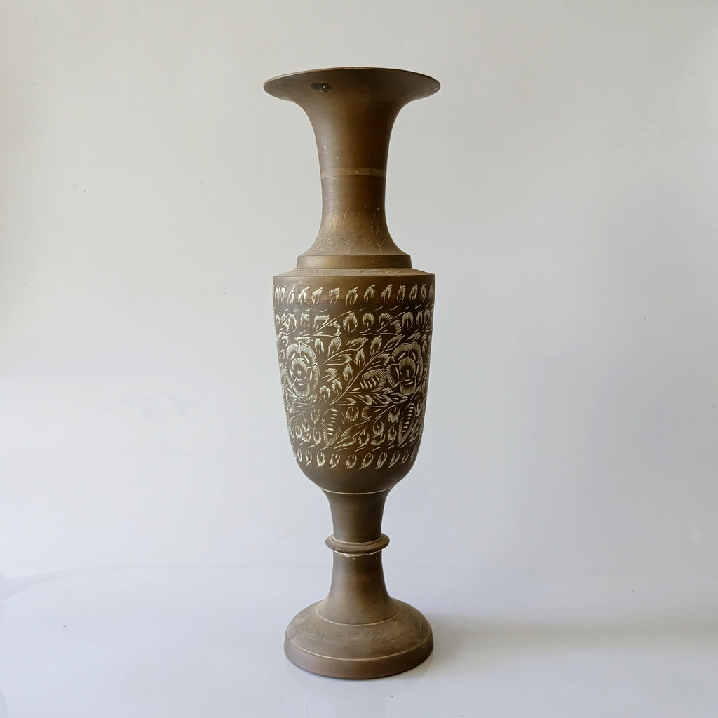כד בראס גבוהוינטג' הודימעוטר בחריטות מהממות של פרחיםנוכחות מקסימהמצב וינטג' טוב מאוד, יש פטינה, לא הברקתי אותו כי אני אוהבת את המראה הישןגובה 35 ס"מ(כדי הקלזונה אינם חלק מהפריט ומשמשים רק לצורך הצילום).