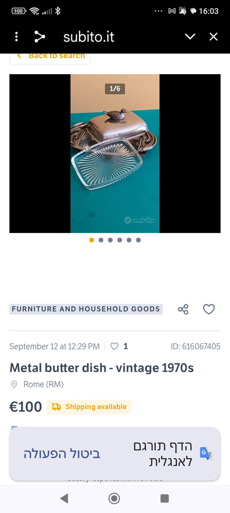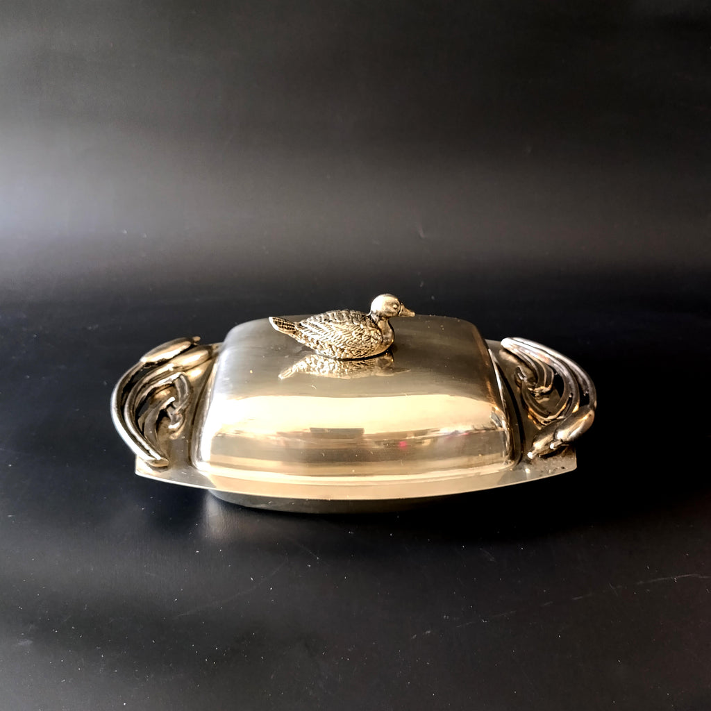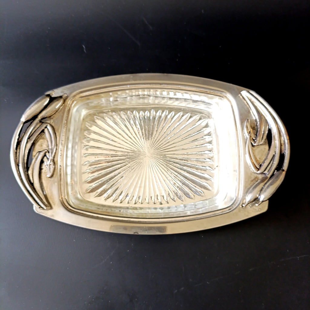 כלי לחמאה, Silver Plated וזכוכית, אר דקו, וינטג'