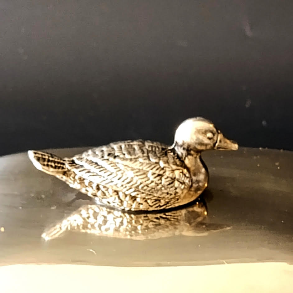 על המכסה פיגורת ברווז וידיות האחיזה עם פיגורת קנים מובלטת