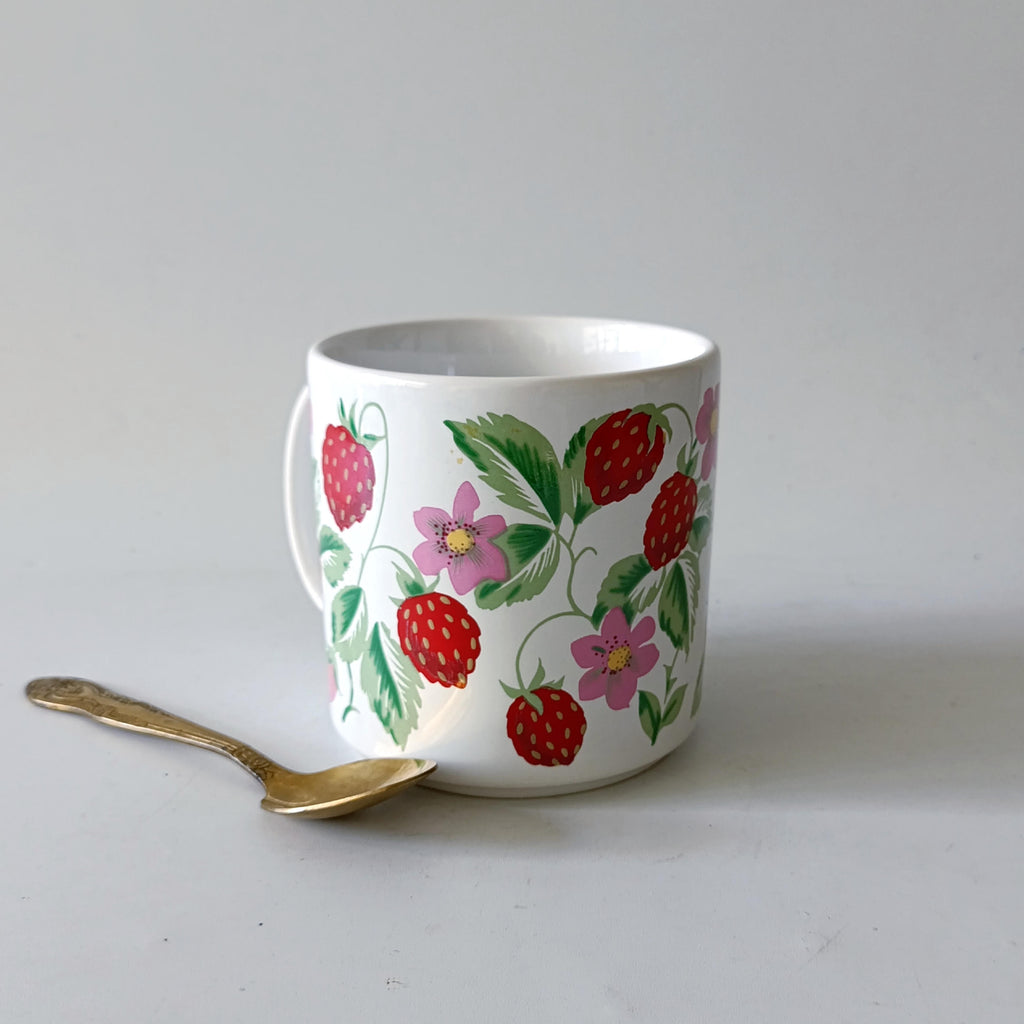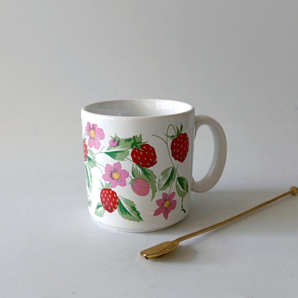 ספל מאג קרמיקה בעיטור תותים ופרחים, וינטג' אנגלי, Trent on stoke