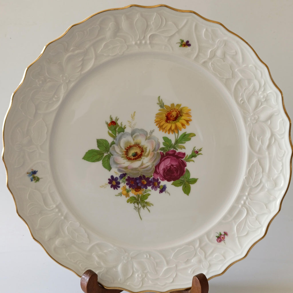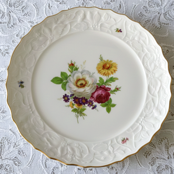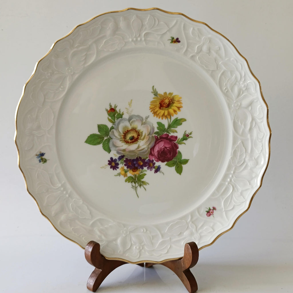 צלחת הגשה מרכזית וינטג' גרמני של Mitterteich עם עיטור פרחים בסגנון אירופה הקלאסית ושוליים מוטבעים בדוגמא יפיפיה מצב וינטג' טוב מאוד, ככל שנעשה בה שימוש הוא היה מזערי קוטר 29.5 ס"מ