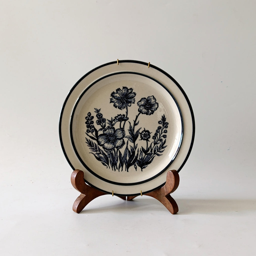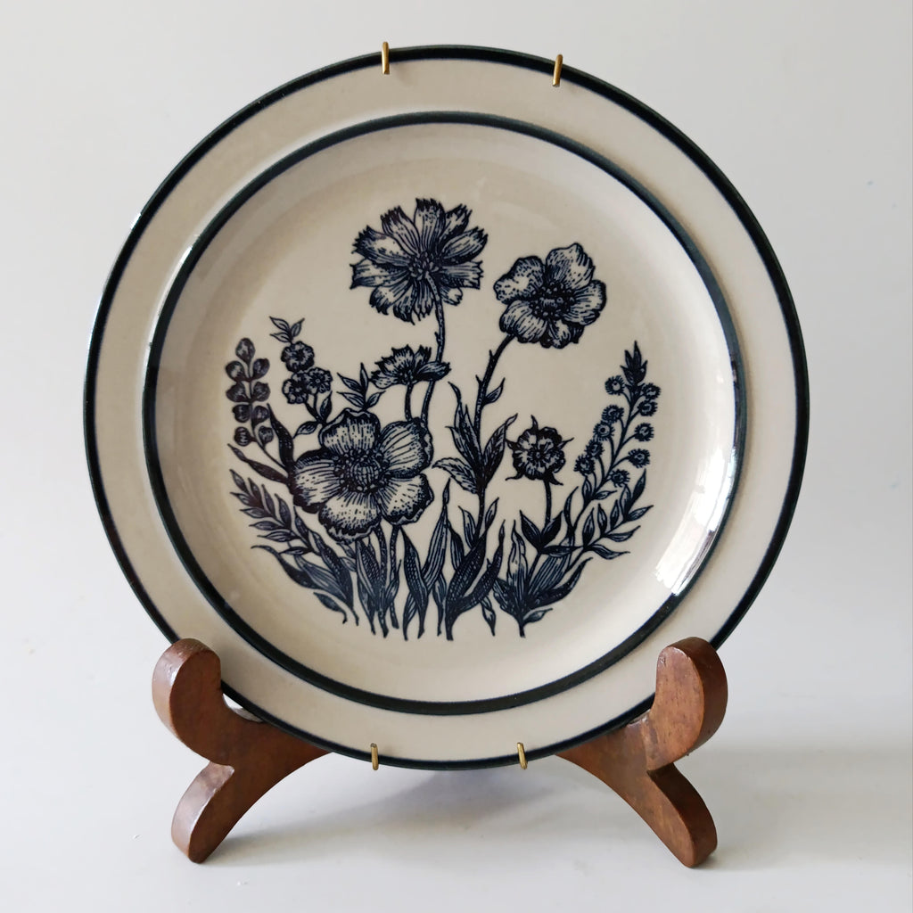 צלחת לתליה (קוטר 18.5 ס"מ) בעיטור פרחים בוטני בכחול, וינטג' יפני