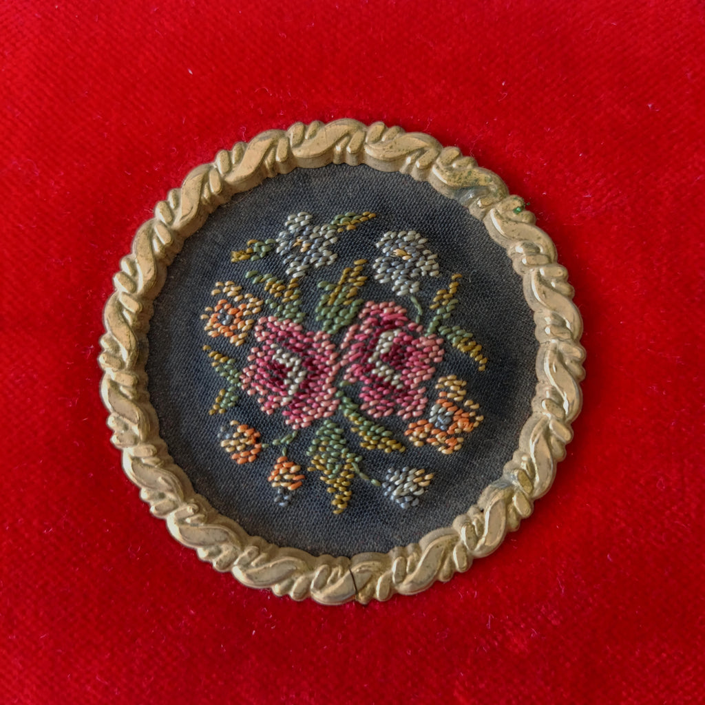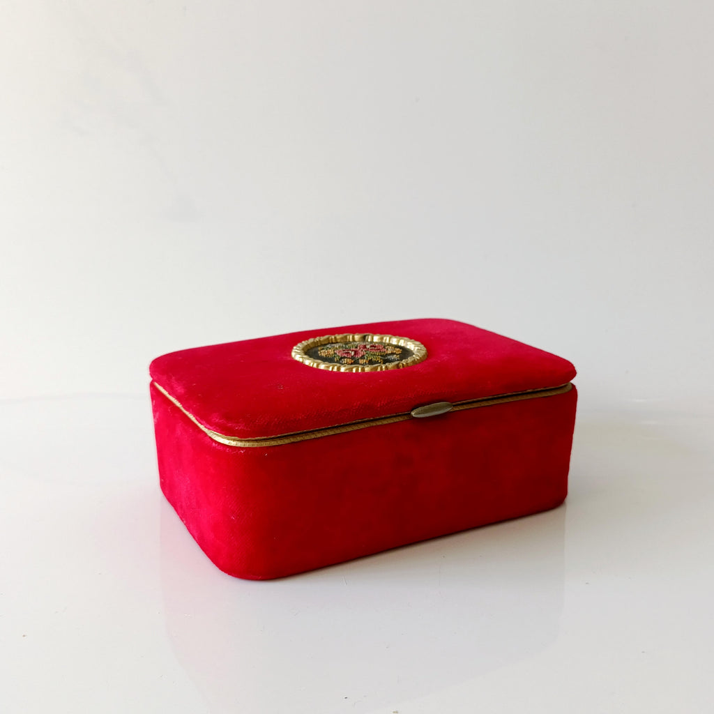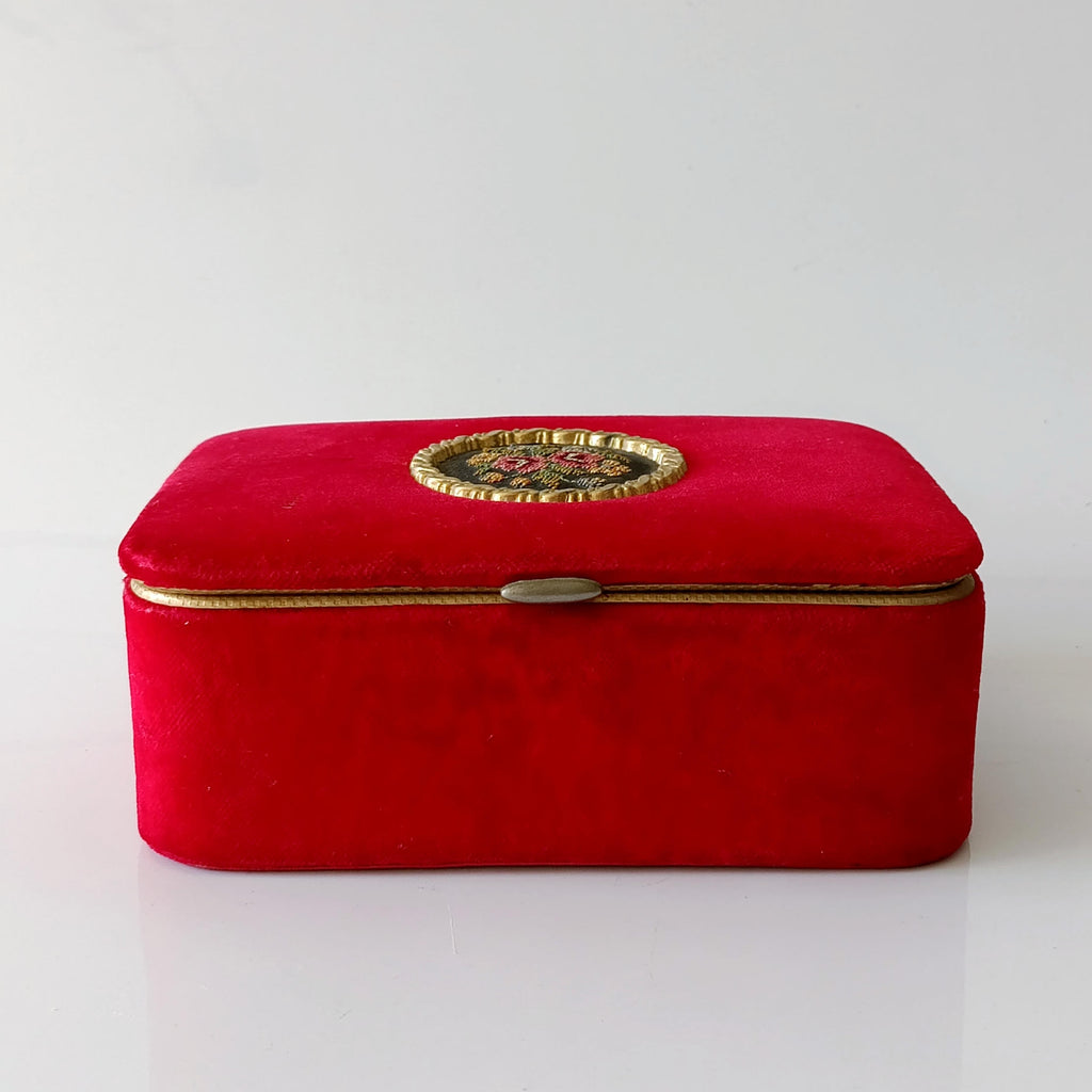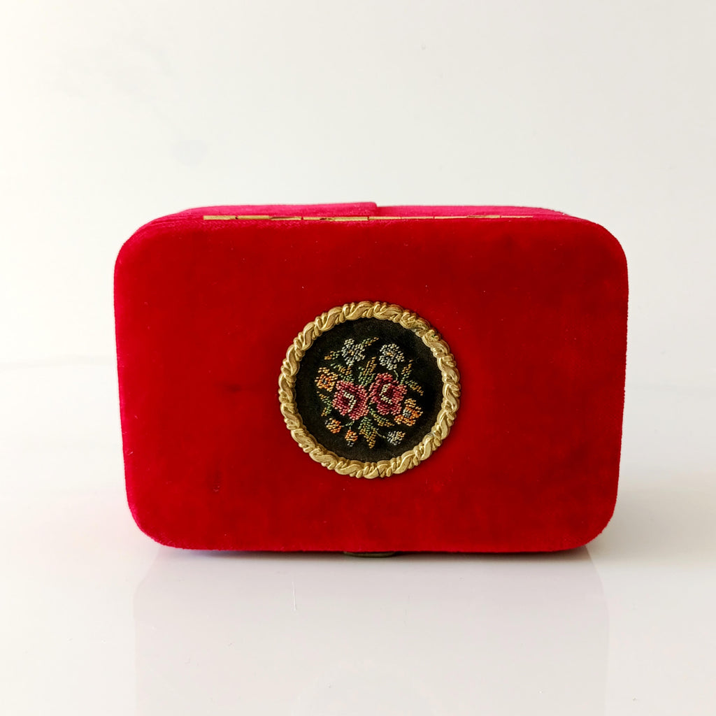 קופסת תכשיטים מקטיפה עם רקמה פטיט פוינט, וינטג' ישראלי, רוזנפלד