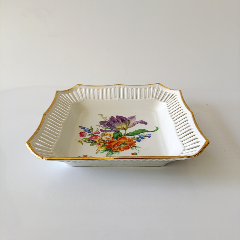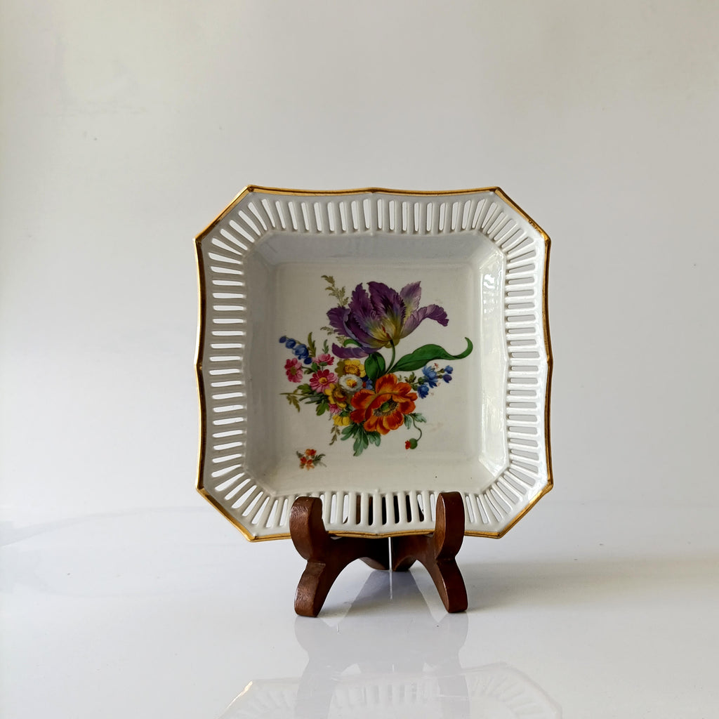 קערה ריבועית עם שוליים מחוררים, וינטג' גרמני