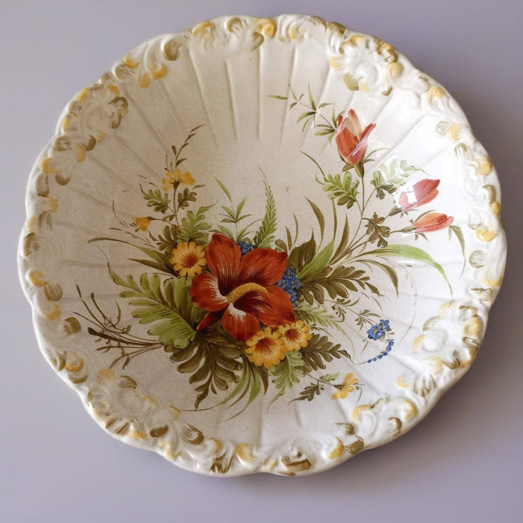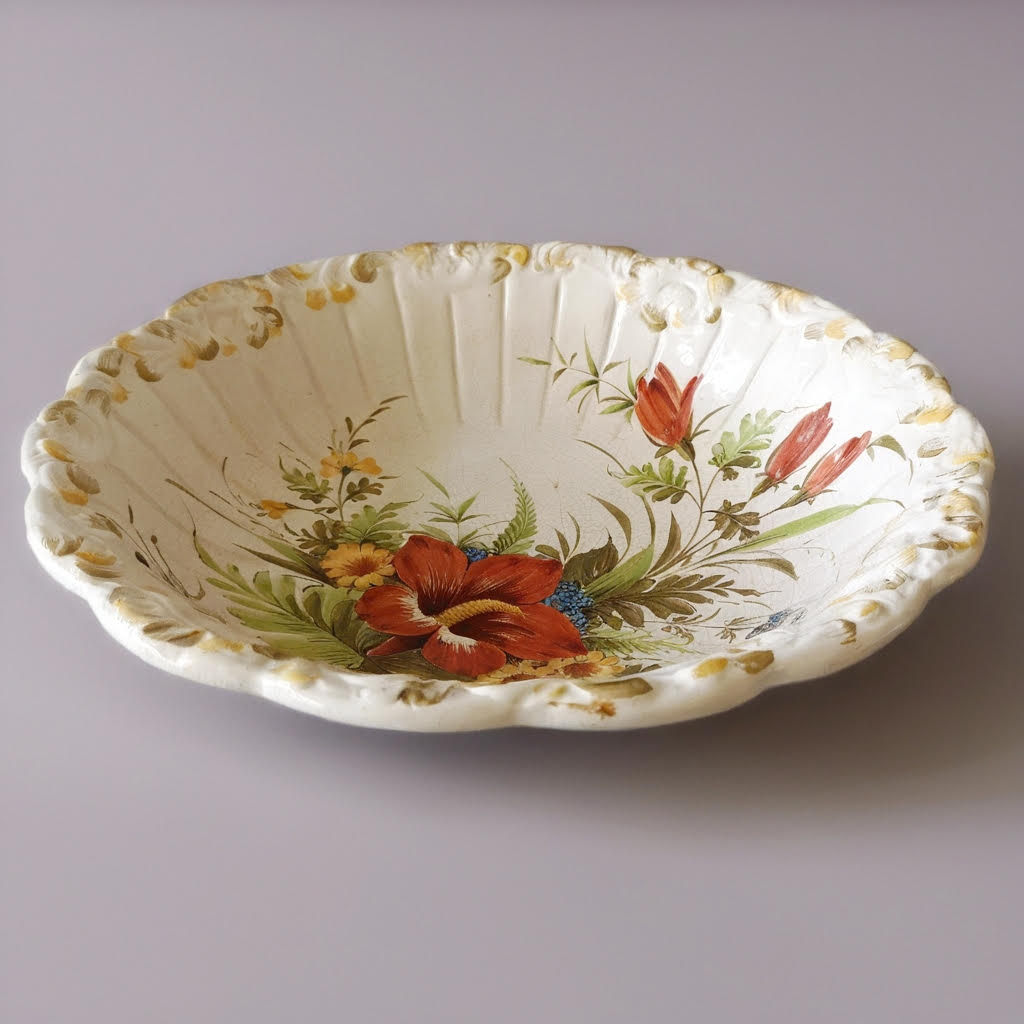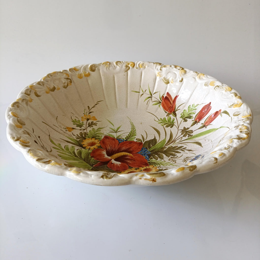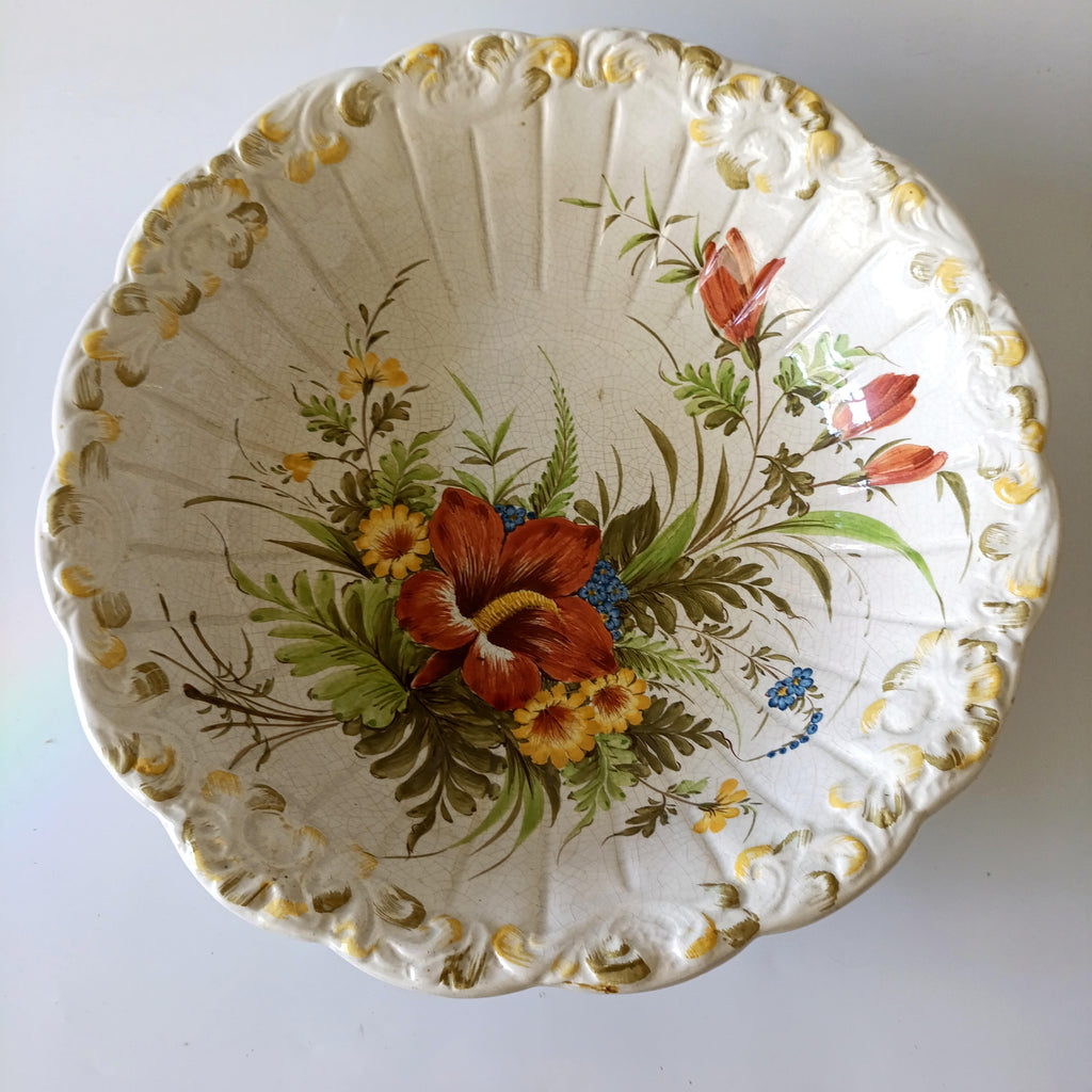 קערת הגשה גדולה (קוטר 32 ס"מ), ציור יד, וינטג' איטלקי