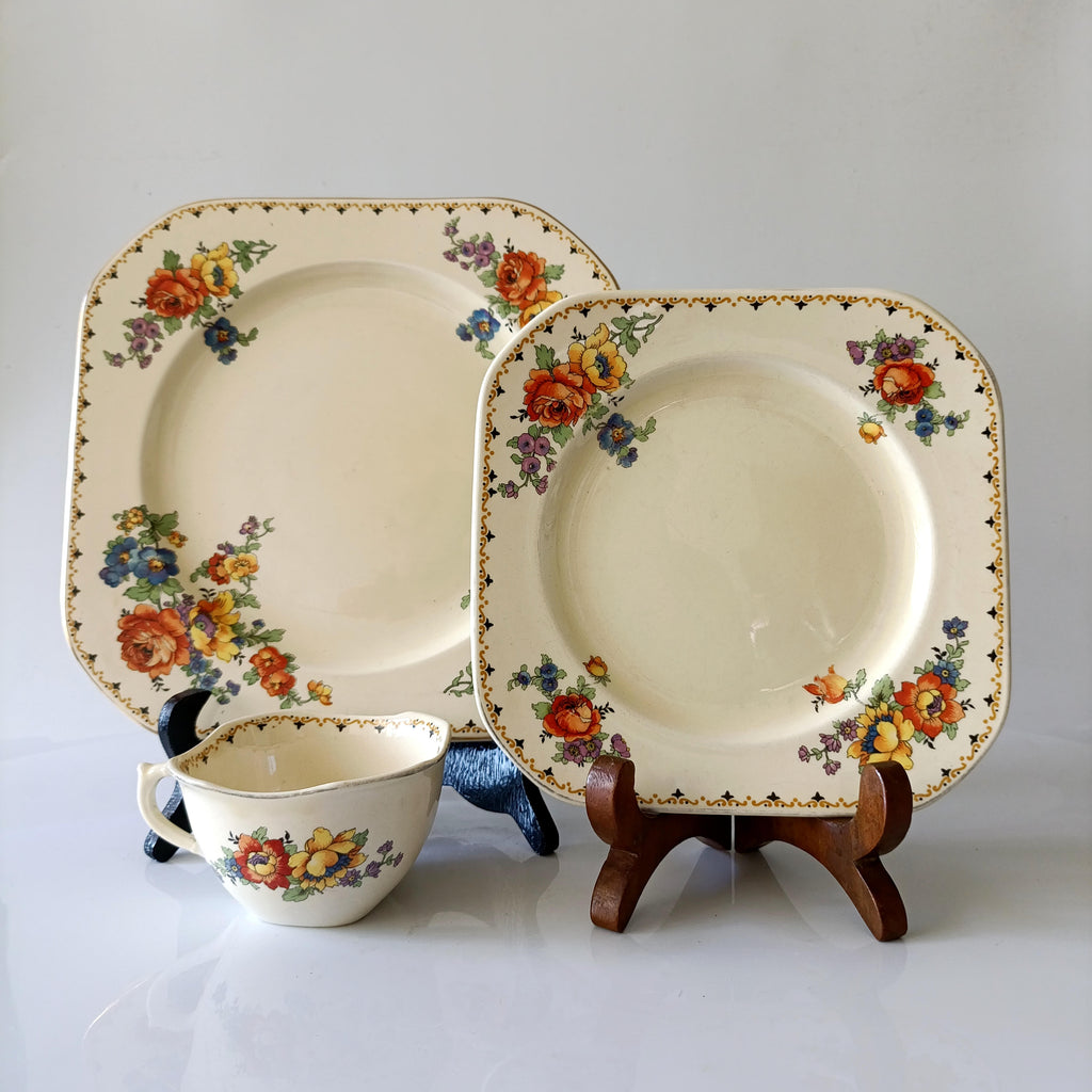 שתי צלחות וספל, יפיפיים, וינטג' אנגלי, Wodds Ivory Ware