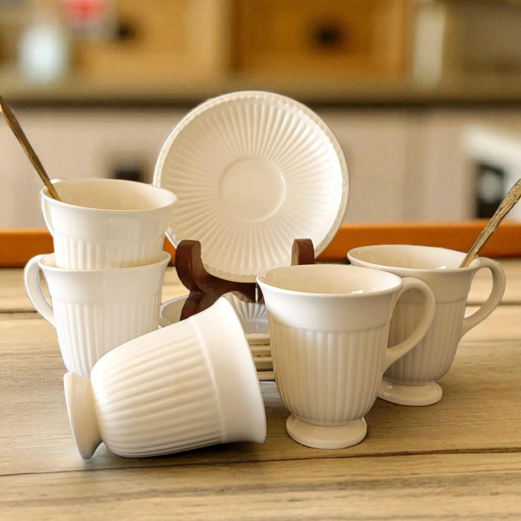 כאן 5 ספלים ו-5 תחתיות, ראו את העיצוב האלגנטי של הספלים