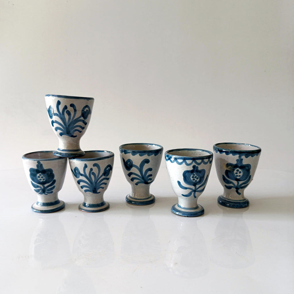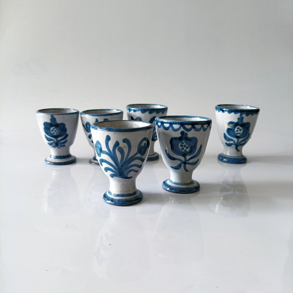 6 גביעי חרס, ציור יד, וינטג' ספרדי