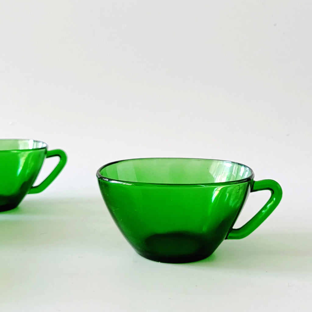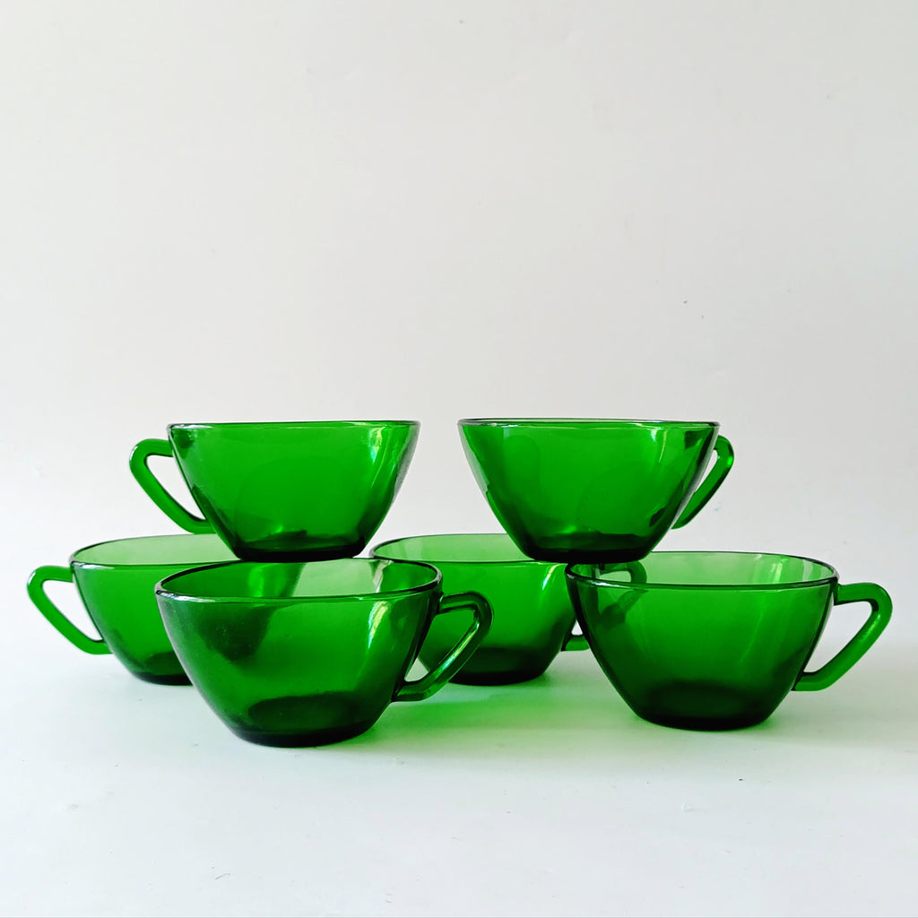 6 ספלי זכוכית ירוקה, וינטג' צרפתי, Vereco, חדשים ללא שימוש קודם