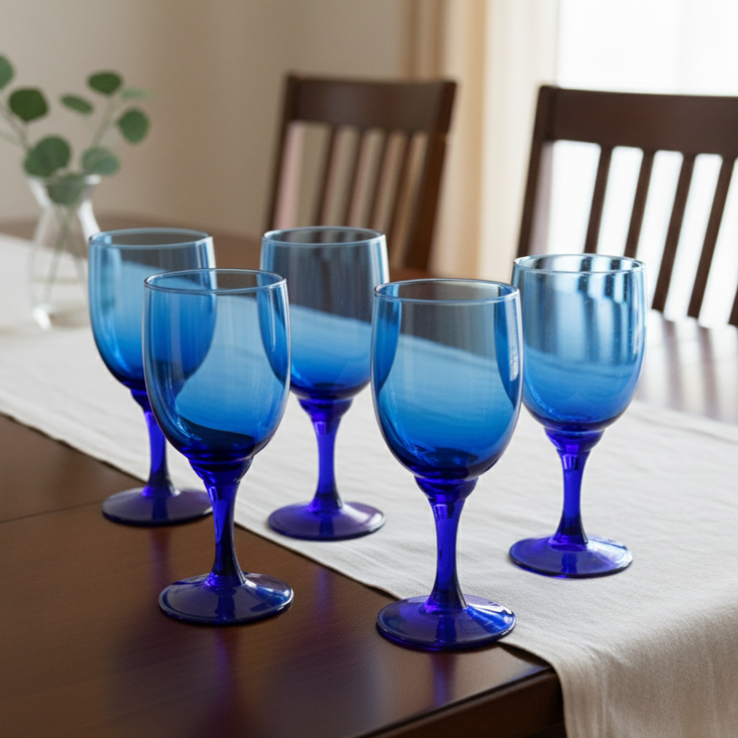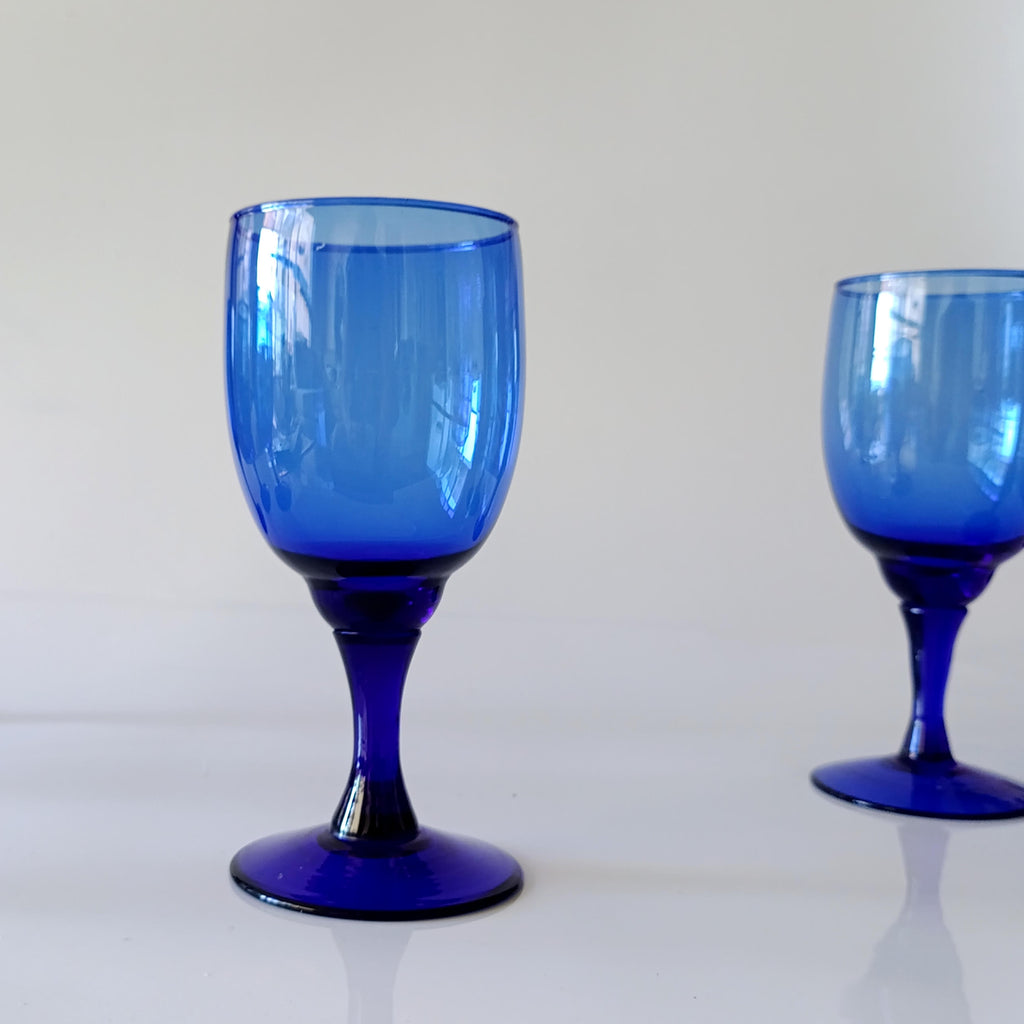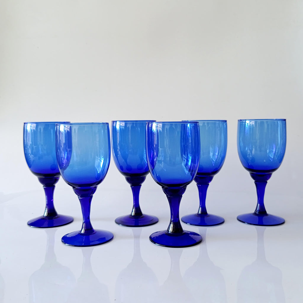6 (שישה) גביעים מזכוכית בכחול, וינטג'