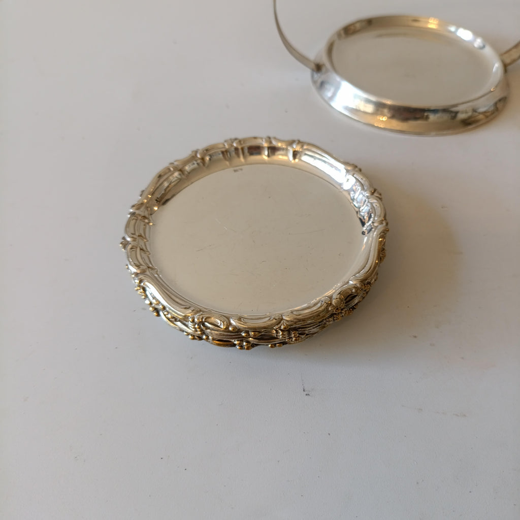 6 תחתיות לכוסות בתוך מנשא, וינטג' בלגי, Argentor, Silver Plated