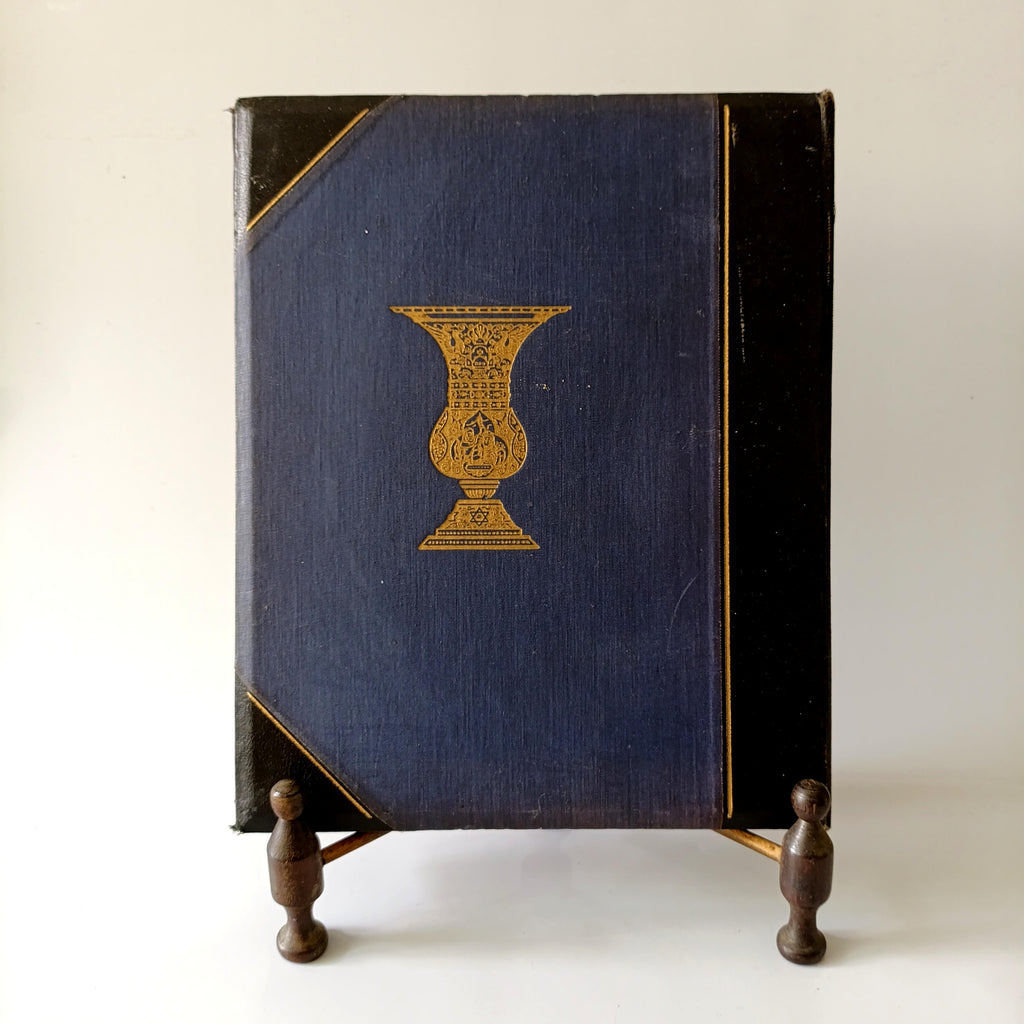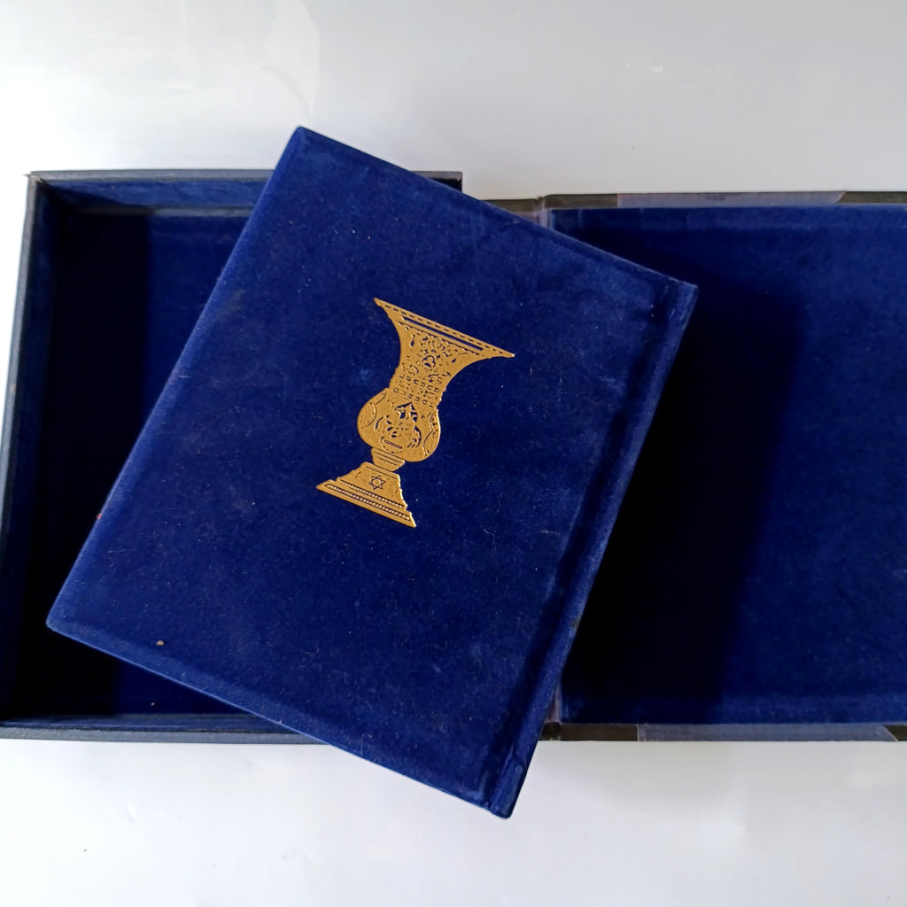 ההגדה נתונה בקופסת עץ מחופה כחול עם אותה הטבעה של גביע מזהב.