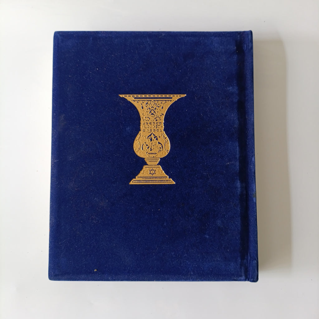 כאן עותק של ההגדה שיצא בשנת 1957 ע"י הוצאת מסדה. כריכת ההגדה מקטיפה כחולה עליה מוטבע גביע יין מוזהב.