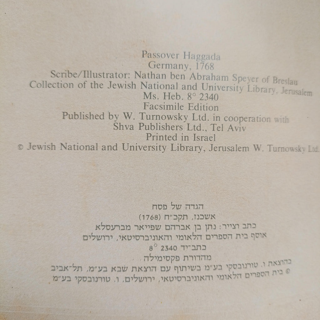 הגדת ברסלאו, הגדה של פסח סגנון אשכנז, מהדורת פקסימיליה, 1984, הוצאת טורנובסקי